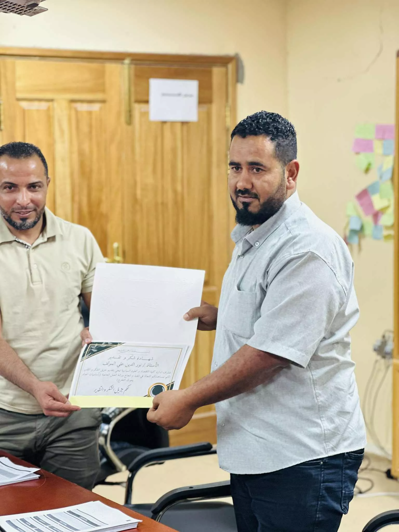 - أقيم صباح اليوم الأحد الموافق 19-10-2025م وعلى تمام الساعة 11:00 صباحاً بمكتبة كلية الإقتصاد والعلوم السياسية / تيجي ، فعاليات ورشة العمل المتخصصة بعنوان "أساسيات إعداد بحوث التخرج "، والتي نظمها قسم المحاسبة بالكلية و قدمها أعضاء هيئة تدريس بالقسم أ. نورالدين المؤلف رئيس قسم المحاسبة ، والأستاذة فاطمة حواص عضو هيئة تدريس بالقسم بمشاركة أ. ربيع سويسي وكيل الشؤون العلمية بالكلية . كانت الورشة فرصة رائعة لإثراء المعرفة وتوسيع آفاق الباحثين . حيث شارك في حضور الورشة لفيف من أعضاء هيئة التدريس بالكلية والطلبة خريجي فصل الخريف 2025م ، مما أضفى على الفعالية طابعًا من التفاعل المثمر والتبادل الفكري والمعرفي .